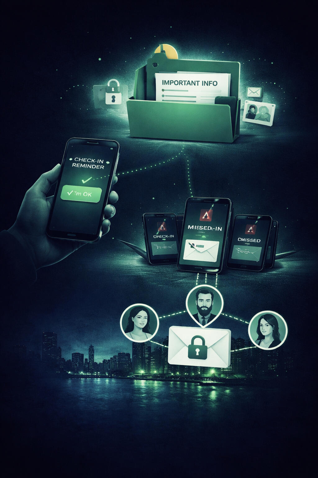 A document sitting in your Google Drive doesn't know if you've gone silent. It doesn't check in with you. It doesn't wait for a signal before delivering your message. And it relies entirely on someone else knowing where to look and when.This system watches for your check-ins. If you miss them - and only if you miss them, it acts on your behalf. You stay in control right up until the moment you can't be.