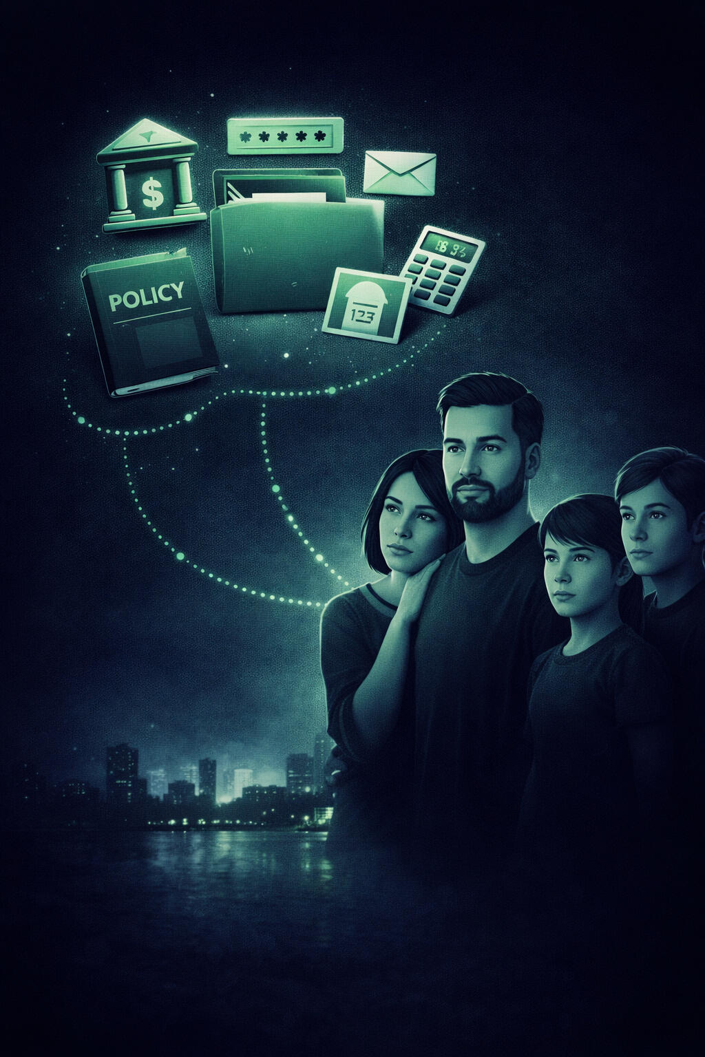You're a parent, a partner, or someone whose family relies on you - not necessarily for income, but for information. You know where everything is. You know the account numbers, the insurance policy, the name of the accountant, the password to the email the family bills come to.Your partner is wonderful but has never had to deal with any of that. Your kids are old enough to handle things, but they don't have the details.You've been meaning to write it all down. Make a folder. Have the conversation. You just haven't gotten around to it.